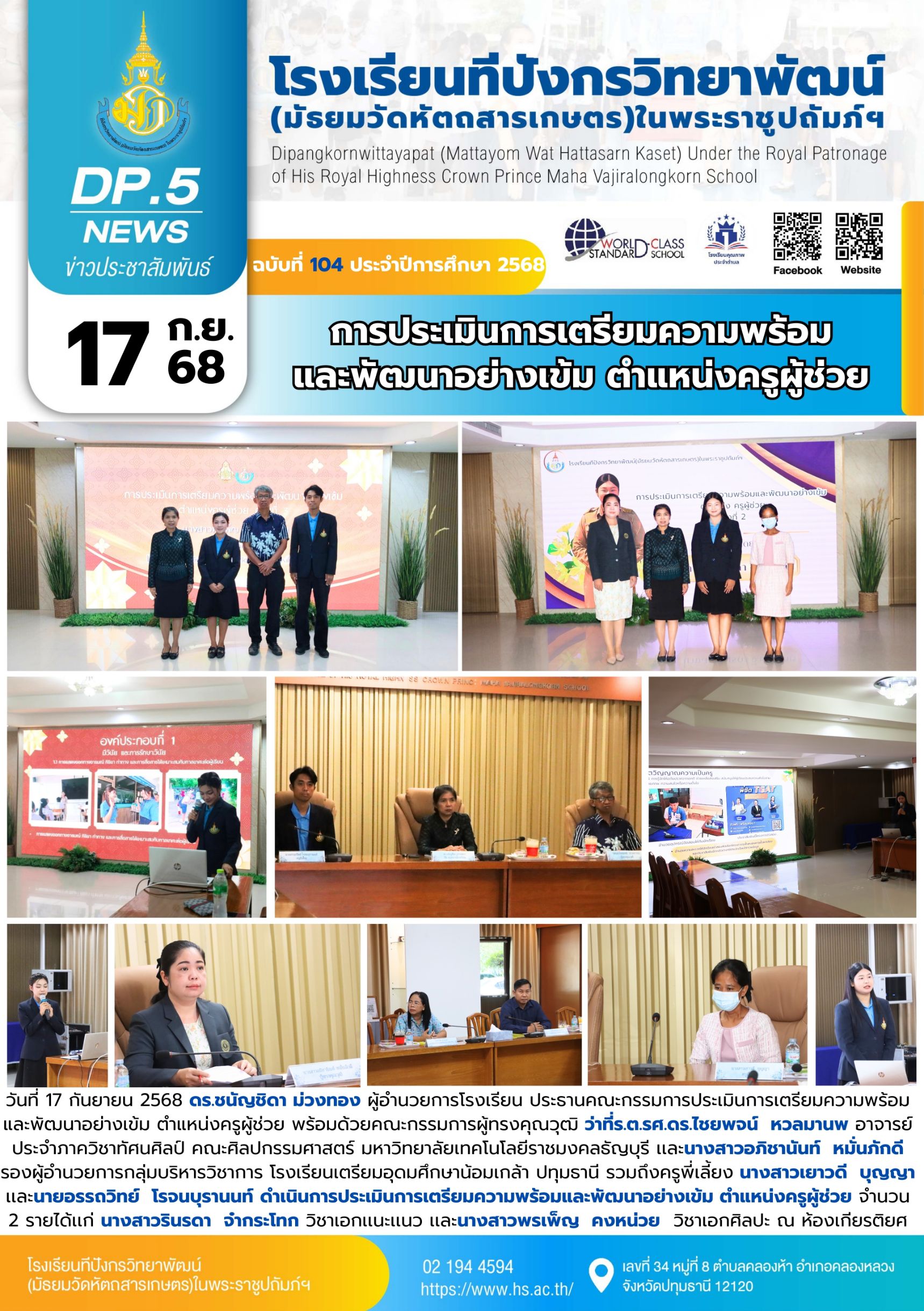 จุลสารฉบับที่ 104/2568 📌หัวข้อ : การประเมินการเตรียมความพร้อมเเละพัฒนาอย่างเข้ม ตำเเหน่งครูผู้ช่วย 23 ก.ย. 2568นายนวรัตน์ สุขสำราญข่าวประชาสัมพันธ์