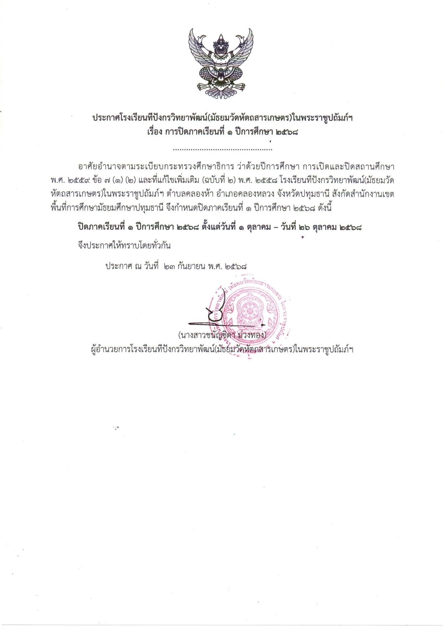 ประกาศโรงเรียนทีปังกรวิทยาพัฒน์(มัธยมวัดหัตถสารเกษตร)ในพระราชูปถัมภ์ฯ เรื่อง การปิดภาคเรียนที่ ๑ ปีการศึกษา ๒๕๖๘ 29 ก.ย. 2568นายนวรัตน์ สุขสำราญประกาศ