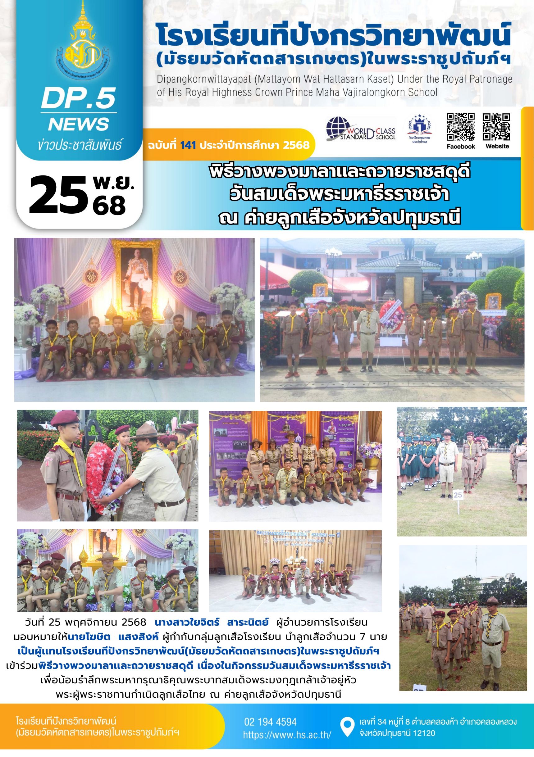 จุลสารฉบับที่ 141/2568 📌หัวข้อ : พิธีวางพวงมาลาเเละถวายราชสดุดี วันสมเด็จพระมหาธีรราชเจ้า ณ ค่ายลูกเสือจังหวัดปทุมธานี 25 พ.ย. 256830 พ.ย. 2025นายนวรัตน์ สุขสำราญข่าวประชาสัมพันธ์