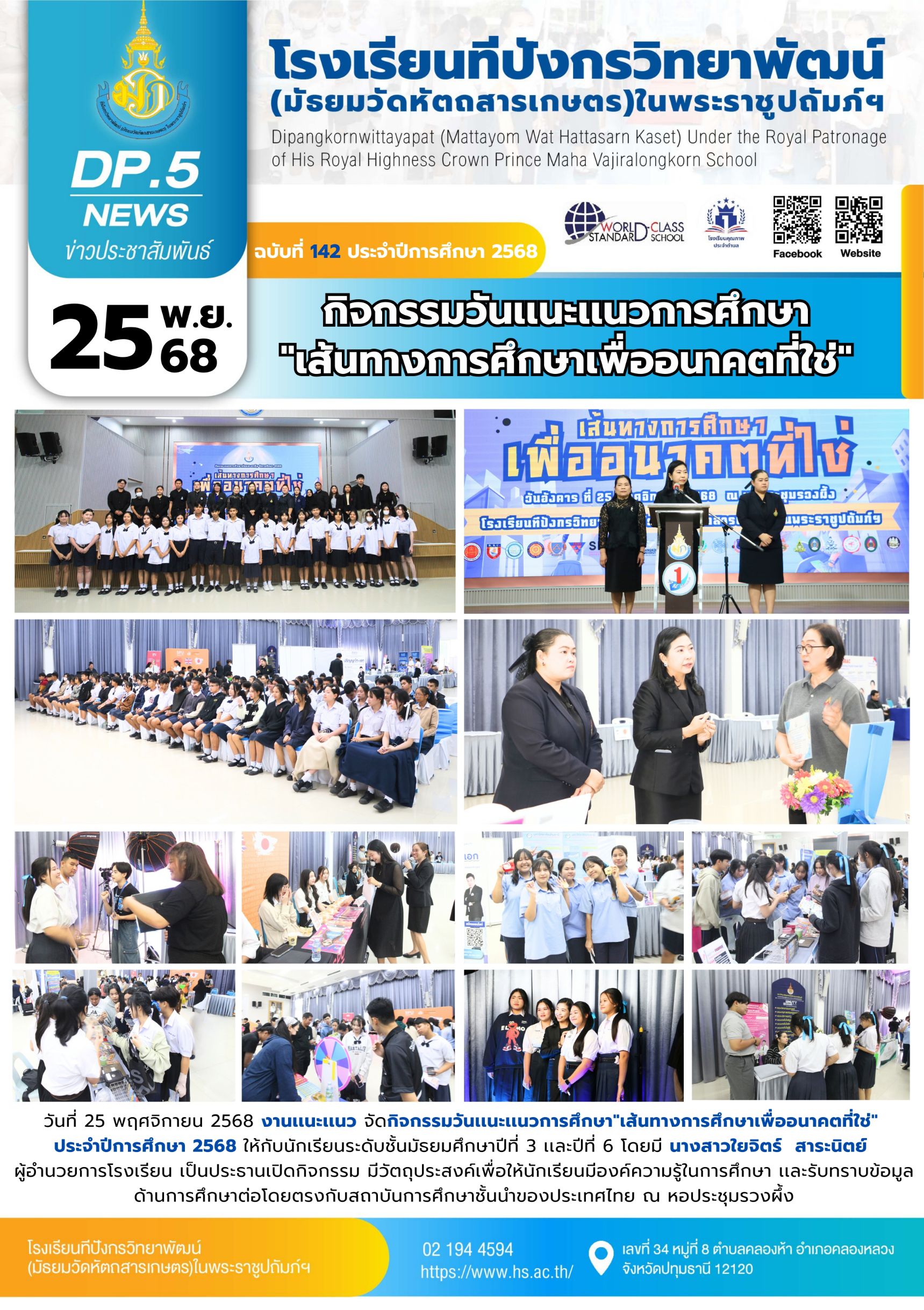 จุลสารฉบับที่ 142/2568 📌หัวข้อ : กิจกรรมวันเเนะเเนวการศึกษา “เส้นทางการศึกษาเพื่ออนาคตที่ใช่” 25 พ.ย. 256830 พ.ย. 2025นายนวรัตน์ สุขสำราญข่าวประชาสัมพันธ์