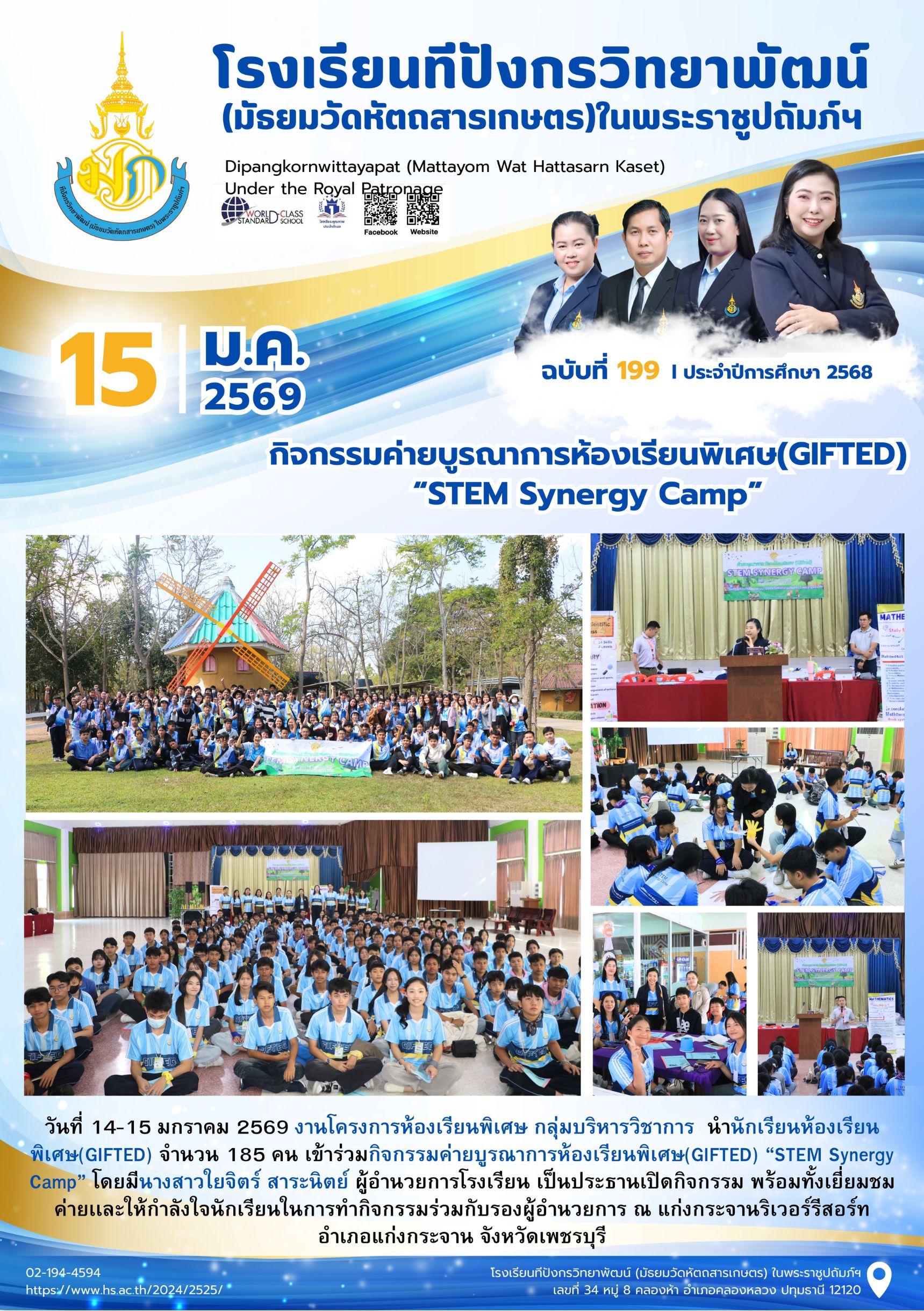 จุลสารฉบับที่ 199/2568 📌หัวข้อ : กิจกรรมค่ายบูรณาการห้องเรียนพิเศษ(GIFTED)“STEM Synergy Camp” 16 ม.ค. 256922 ม.ค. 2026นายนวรัตน์ สุขสำราญข่าวประชาสัมพันธ์