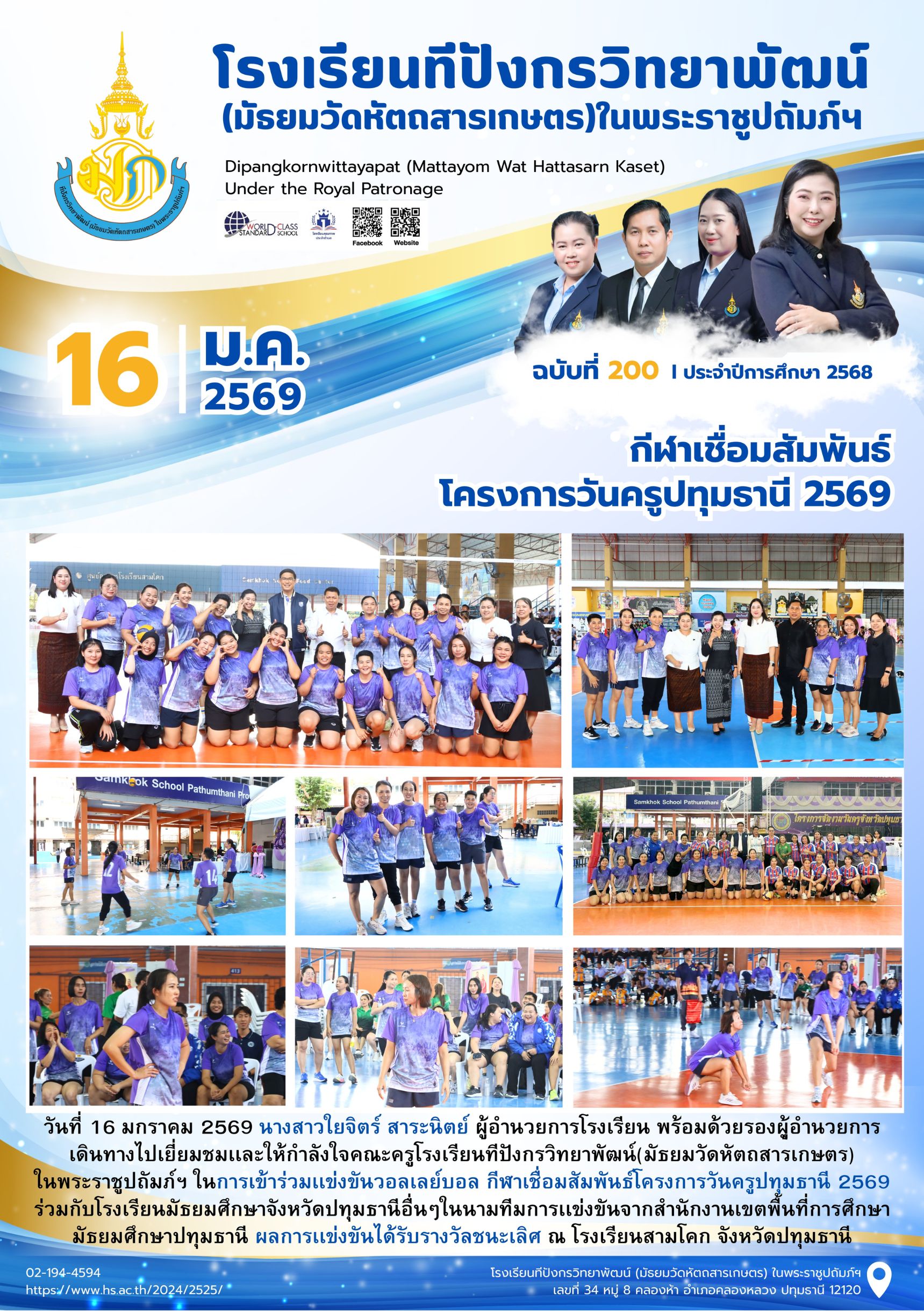จุลสารฉบับที่ 200/2568 📌หัวข้อ : กีฬาเชื่อมสัมพันธ์โครงการวันครูปทุมธานี 2569 16 ม.ค. 256922 ม.ค. 2026นายนวรัตน์ สุขสำราญข่าวประชาสัมพันธ์