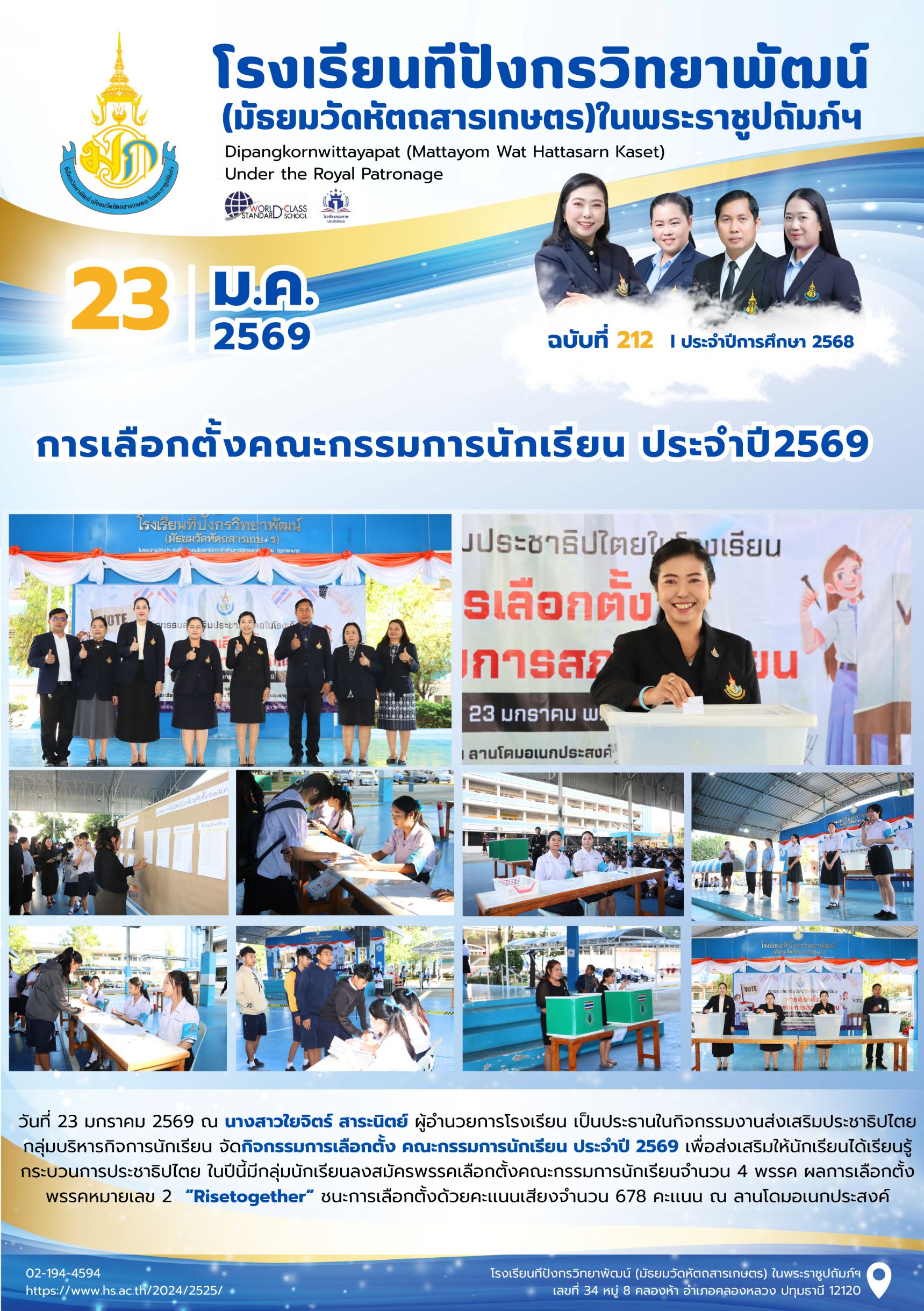 จุลสารฉบับที่ 212/2568 📌หัวข้อ : การเลือกตั้งคณะกรรมการนักเรียน ประจำปี2569 23 ม.ค. 256928 ม.ค. 2026นายนวรัตน์ สุขสำราญข่าวประชาสัมพันธ์