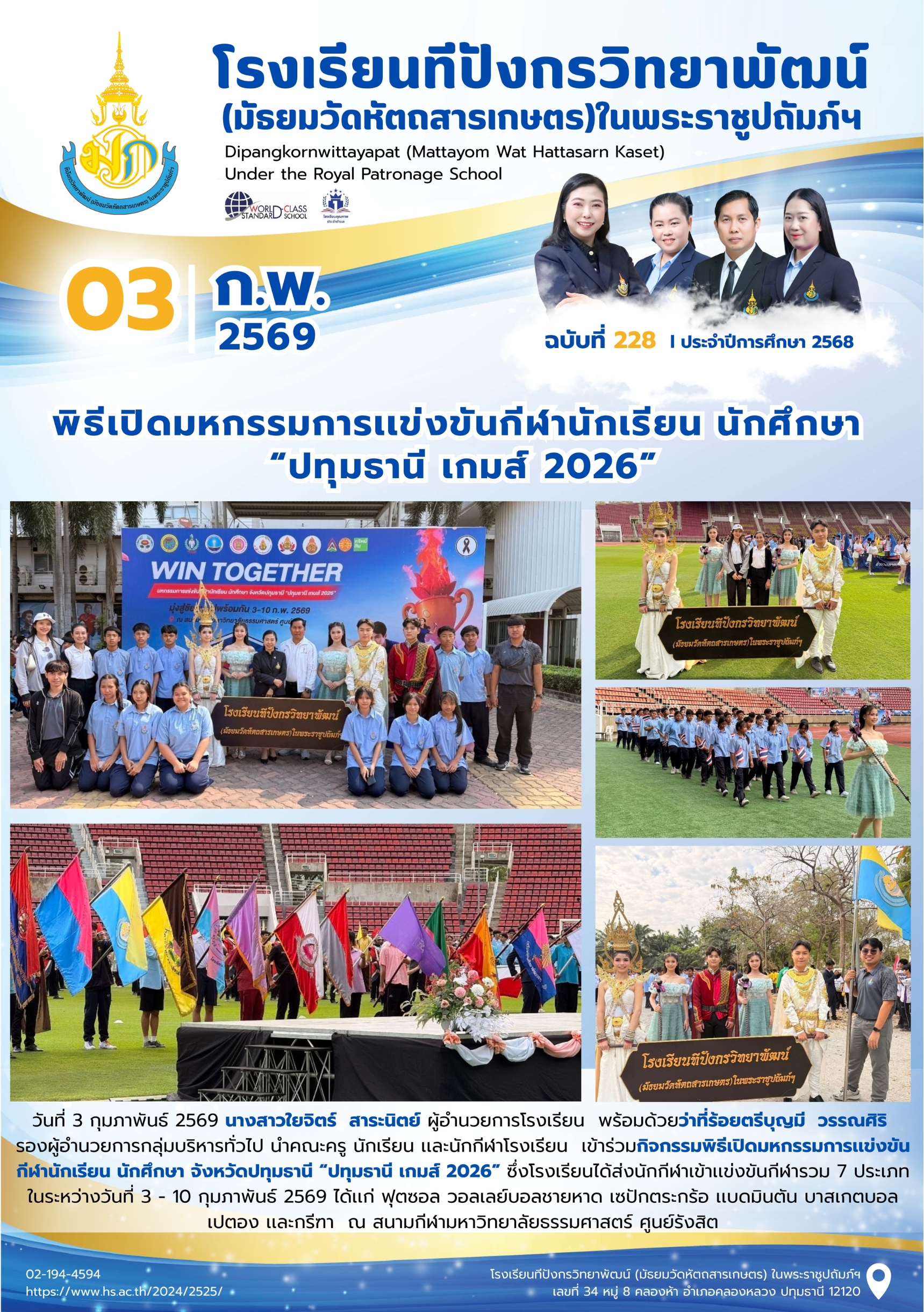 จุลสารฉบับที่ 228/2568 📌หัวข้อ : พิธีเปิดมหกรรมการเเข่งขันกีฬานักเรียน นักศึกษา “ปทุมธานี เกมส์ 2026” 16 ก.พ. 2569นายนวรัตน์ สุขสำราญข่าวประชาสัมพันธ์