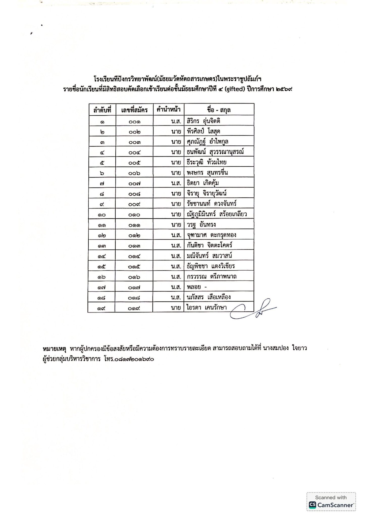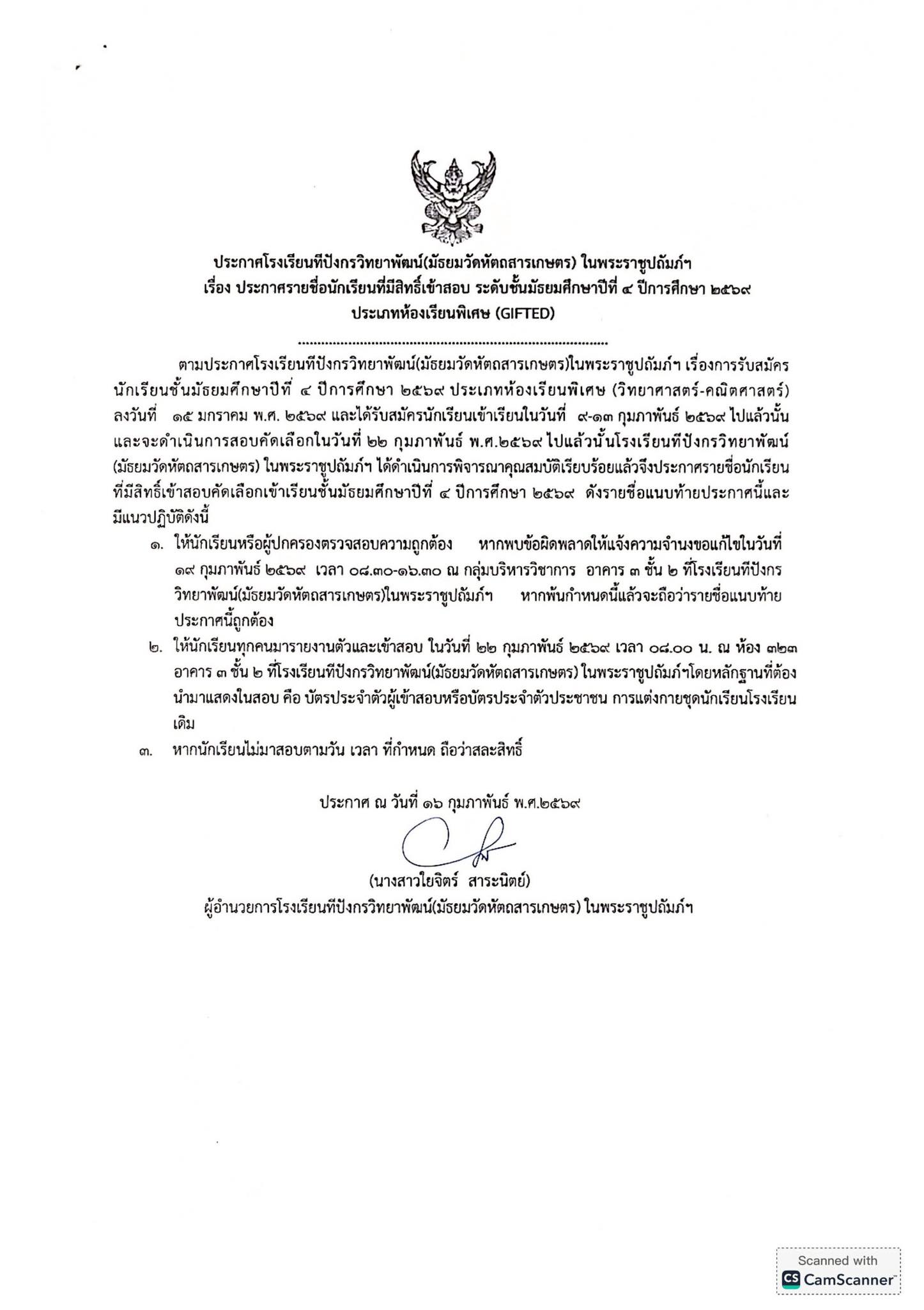 ประกาศโรงเรียนทีปังกรวิทยาพัฒน์(มัธยมวัดหัตถสารเกษตร)ในพระราชูปถัมภ์ฯ เรื่อง ประกาศรายชื่อนักเรียนที่มีสิทธิ์เข้าสอบ ระดับชั้นมัธยมศึกษาปีที่ ๔ ปีการศึกษา ๒๕๖๙ ประเภทห้องเรียนพิเศษ (GIFTED)
