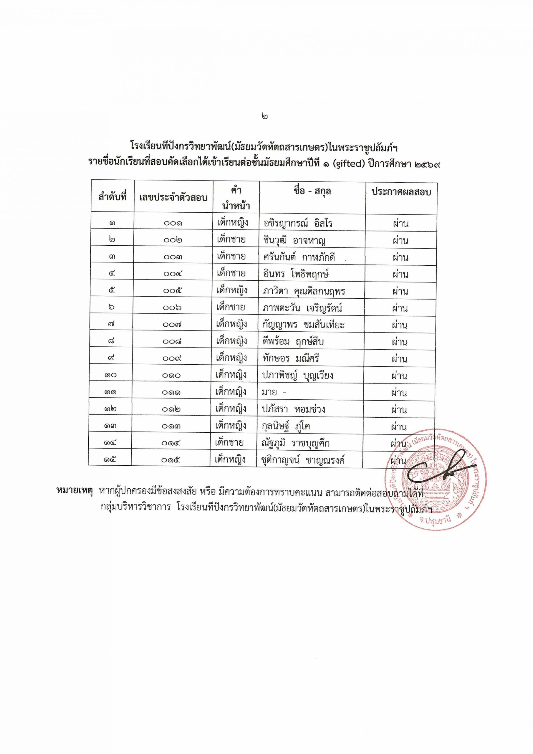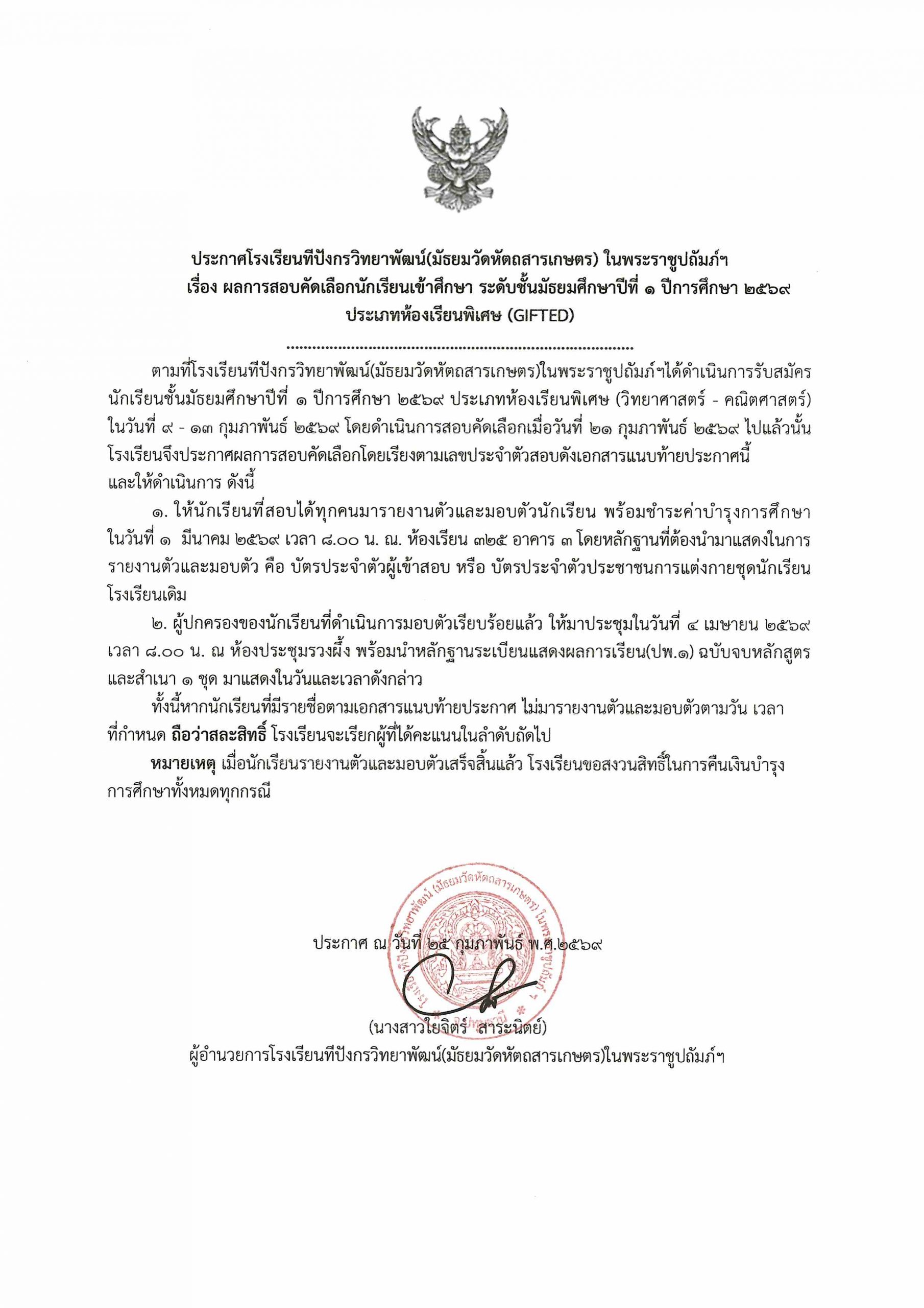 ประกาศผลการสอบคัดเลือกนักเรียนเข้าศึกษา ระดับชั้นมัธยมศึกษาปีที่ ๑ ปีการศึกษา ๒๕๖๙ ประเภทห้องเรียนพิเศษ (GIFTED) 25 ก.พ. 256925 ก.พ. 2026นายนวรัตน์ สุขสำราญประกาศ ระบบประกาศคะแนนสอบห้องเรียนพิเศษ Gifted :https://script.google.com/…/AKfycbw0nFVFpuUJ0…/exec