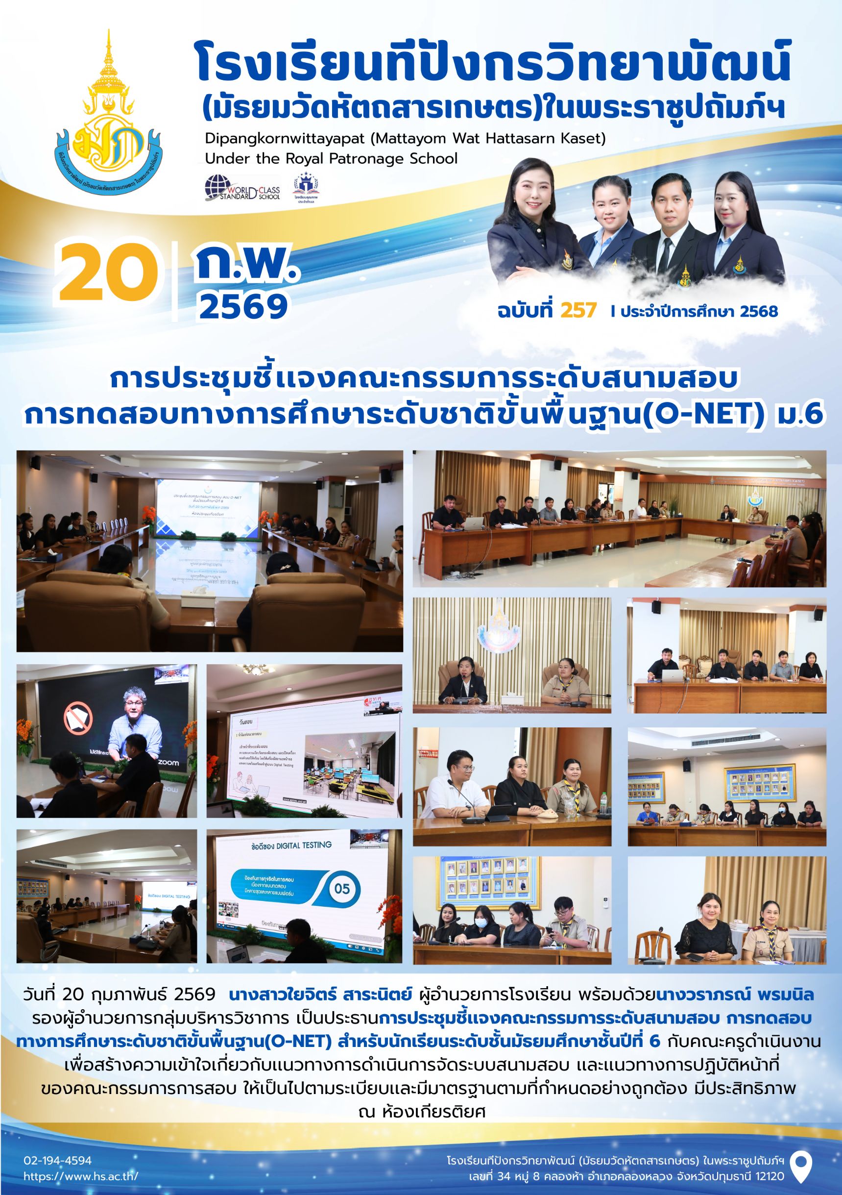 จุลสารฉบับที่ 257/2568 📌หัวข้อ : การประชุมชี้เเจงคณะกรรมการระดับสนามสอบ การทดสอบทางการศึกษาระดับชาติขั้นพื้นฐาน(O-NET)ม.6 27 ก.พ. 2569นายนวรัตน์ สุขสำราญข่าวประชาสัมพันธ์