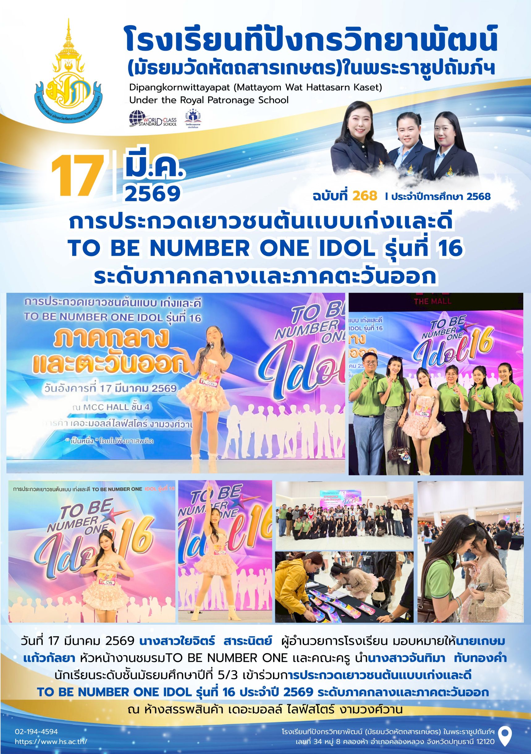 จุลสารฉบับที่ 268/2568 📌หัวข้อ : การประกวเยาวชนต้นเเบบเก่งเเละดี TO BE NUMBER ONE IDOL รุ่นที่16 ระดับภาคกลางเเละภาคตะวันออก 24 มี.ค. 256924 มี.ค. 2026นายนวรัตน์ สุขสำราญข่าวประชาสัมพันธ์