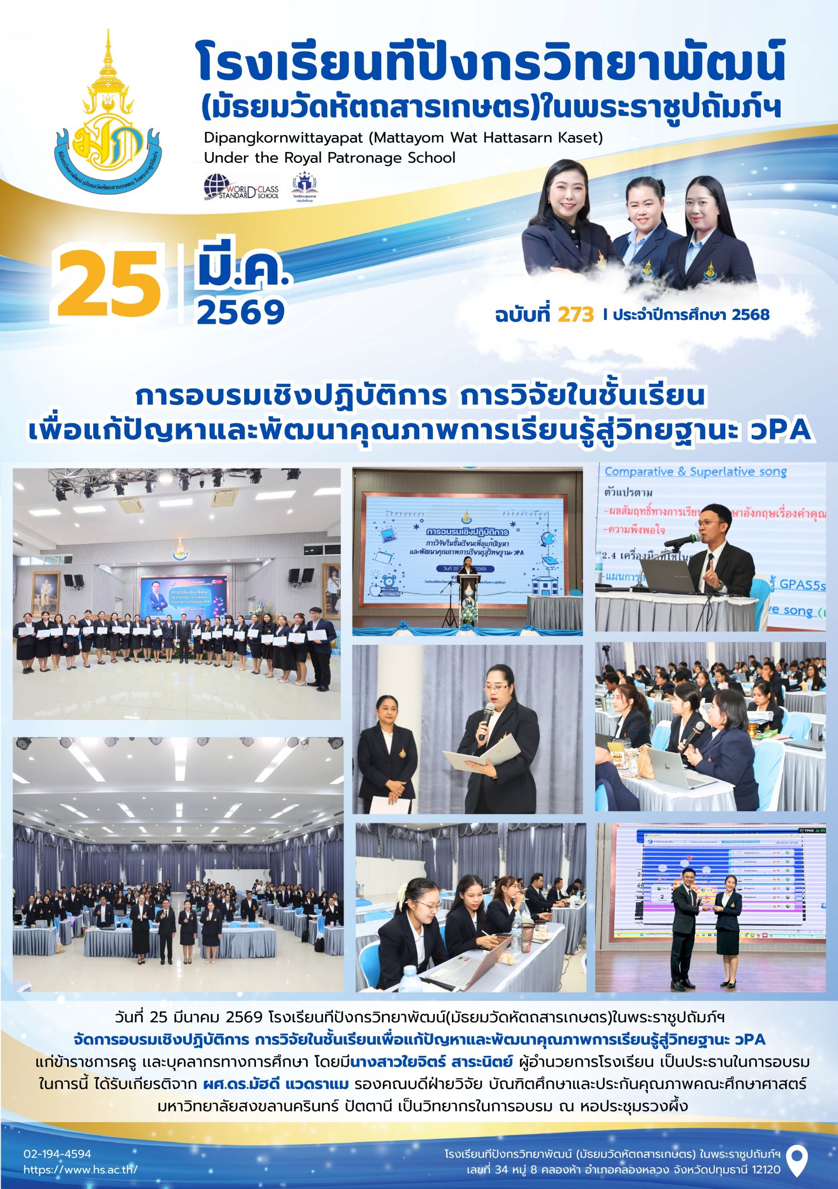 จุลสารฉบับที่ 273/2568 📌หัวข้อ : การอบรมเชิงปฏิบัติการ การวิจัยในชั้นเรียนเพื่อเเก้ปัญหาเเละพัฒนาคุณภาพการเรียนรู้สู่วิทยฐานะ วPA 31 มี.ค. 2569นายนวรัตน์ สุขสำราญข่าวประชาสัมพันธ์