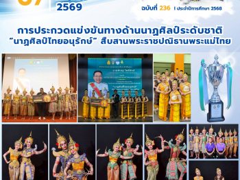 จุลสารฉบับที่ 236/2568 📌หัวข้อ : การประกวดเเข่งขันทางด้านนาฏศิลป์ระดับชาติ”นาฏศิลป์ไทยอนุรักษ์” สืบสานพระราชปณิธานพระเเม่ไทย 16 ก.พ. 2569นายนวรัตน์ สุขสำราญข่าวประชาสัมพันธ์