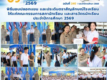 จุลสารฉบับที่ 240/2568 📌หัวข้อ : พิธีมอบปลอกเเขน เเละประดับตราสัญลักษณ์โรงเรียนให้เเก่คณะกกรมการสภานักเรียน เเละสารวัตรนักเรียน ประจำปีการศึกษา2569 16 ก.พ. 2569นายนวรัตน์ สุขสำราญข่าวประชาสัมพันธ์