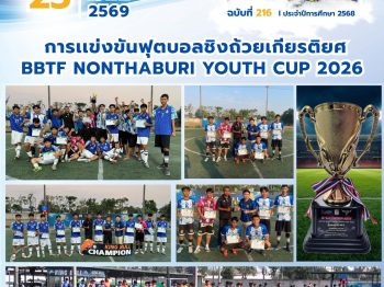 จุลสารฉบับที่ 216/2568 📌หัวข้อ : การเเข่งขันฟุตบอลชิงถ้วยเกียรติยศ BBTF NONTHABURI YOUTH CUP 2026 25 ม.ค. 25693 ก.พ. 2026นายนวรัตน์ สุขสำราญข่าวประชาสัมพันธ์