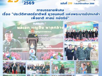 จุลสารฉบับที่ 219/2568 📌หัวข้อ : การบรรยายพิเศษ เรื่อง “ประวัติศาสตร์ชาติพลี ยุวชนคนดี เเห่งพระบารมีปกเกล้า เพื่อ ชาติ ศาสน์ กษัตริย์” 3 ก.พ. 2569นายนวรัตน์ สุขสำราญข่าวประชาสัมพันธ์