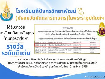 โรงเรียนทีปังกรวิทยาพัฒน์(มัธยมวัดหัตถสารเกษตร)ในพระราชูปถัมภ์ฯ ได้รับรางวัลการขับเคลื่อนหลักสูตรต้านทุจริตศึกษา ปีการศึกษา 2568 “รางวัลระดับดีเด่น” ประเภทสถานศึกษา สังกัดสพฐ. จากสำนักงานป.ป.ช.